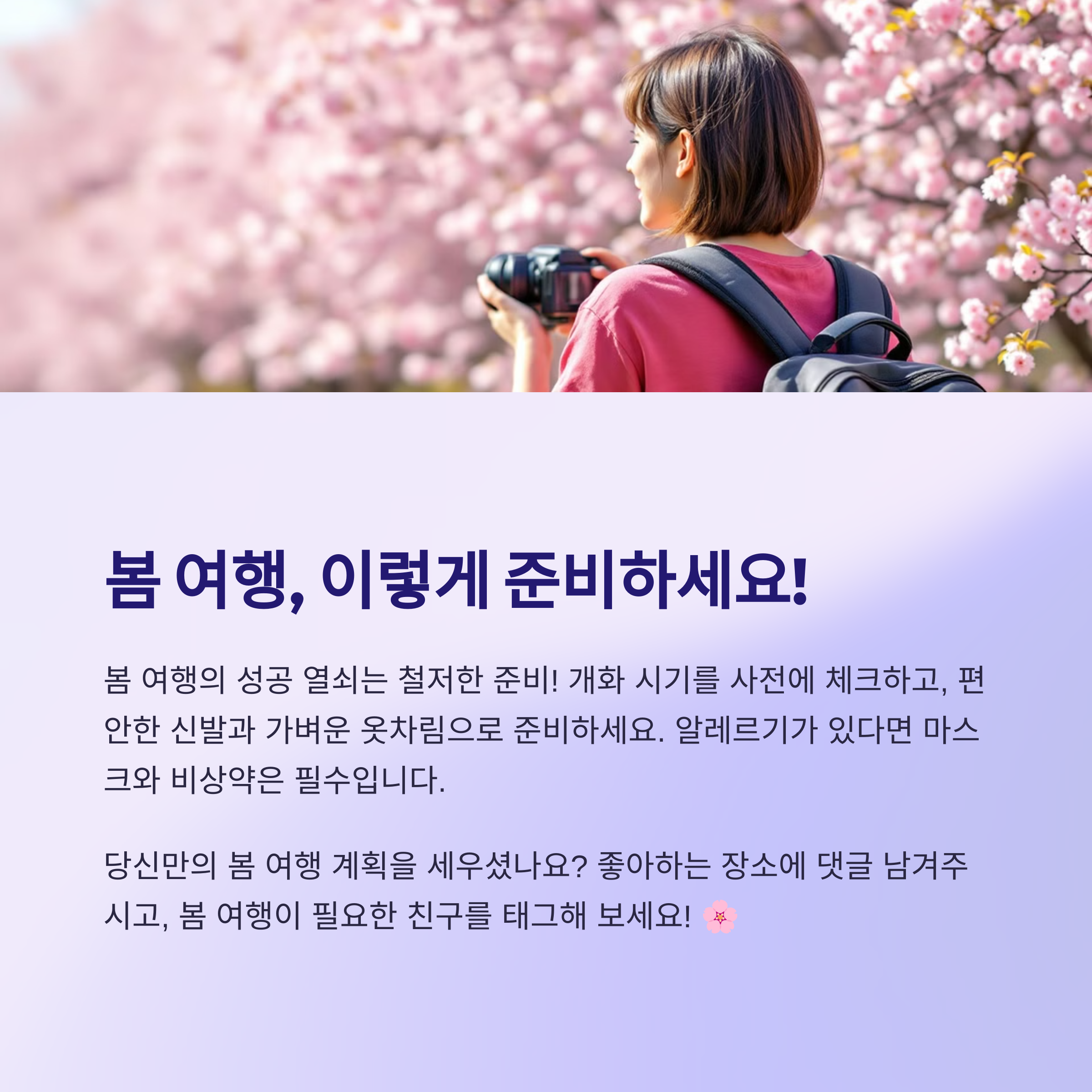 당신이 가장 가보고 싶은 봄 여행지는 어디인가요? 혹은 이미 다녀온 봄 명소 중 특별히 기억에 남는 곳이 있다면 댓글로 나눠주세요. 여러분의 경험이 다른 이들의 여행을 더 풍성하게 만들어줄 수 있습니다.
